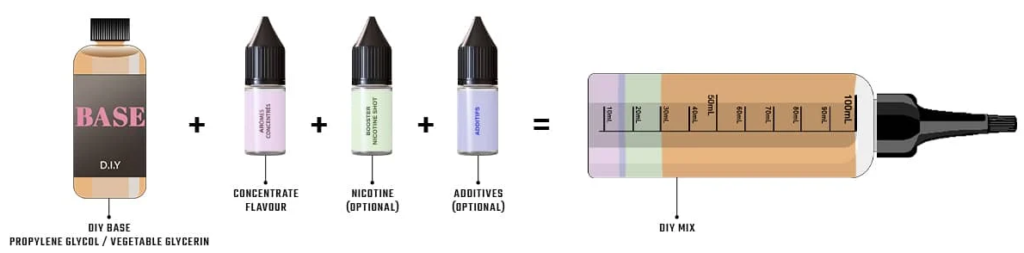 Σε γενικές γραμμές, για να δημιουργήσετε το δικό σας DIY υγρό θα χρειαστείτε τέσσερα βασικά συστατικά. Αυτά είναι η VG (φυτική γλυκερίνη), η PG (προπυλενογλυκόλη), η νικοτίνη και η γεύση. Φυσικά δεν είναι απαραίτητο να τα χρησιμοποιήσετε όλα, αφού μπορείτε να ατμίσετε χωρίς νικοτίνη. Αν και η διαδικασία μπορεί να φαντάζει κουραστική και δύσκολη, στην πραγματικότητα είναι πολύ απλή.