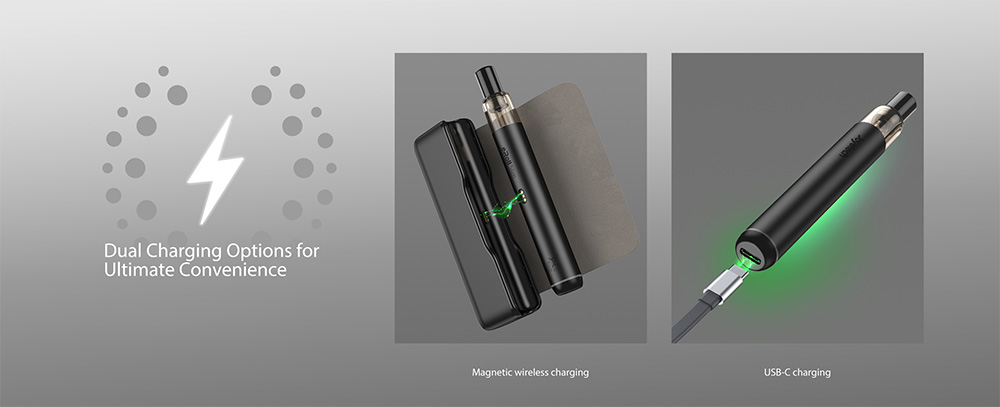 Η συσκευασία περιλαμβάνει διαφορετικά επιστόμια ώστε να διαλέξεις αυτό που ταιριάζει καλύτερα στην προσωπική σου εμπειρία άτμισης. - USB-C Φόρτιση για ευκολία