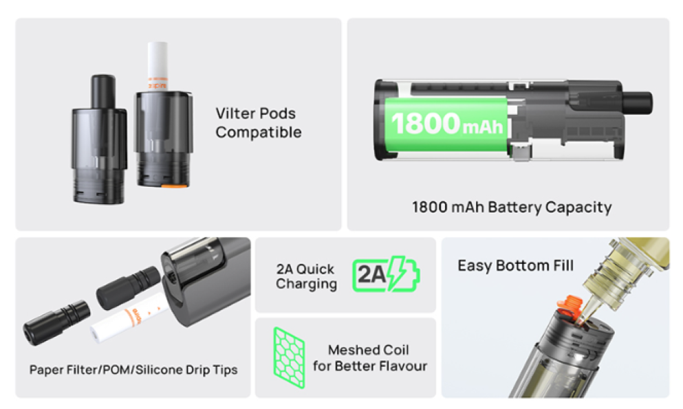 - 1x Aspire Vilter Max Pod Kit (1800 mAh)